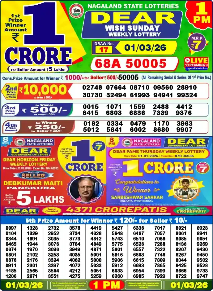 Nagaland Lottery Draw Live 01.03.26 1PM