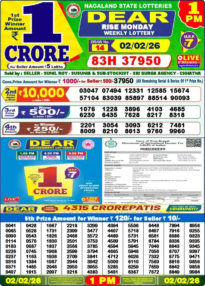 Lottery Sambad 02.02.26 - 1PM