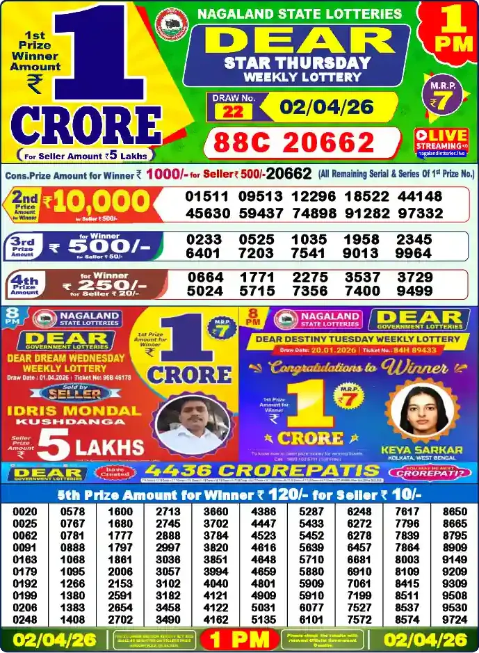 Nagaland Lottery Draw Live 02.04.26 1PM