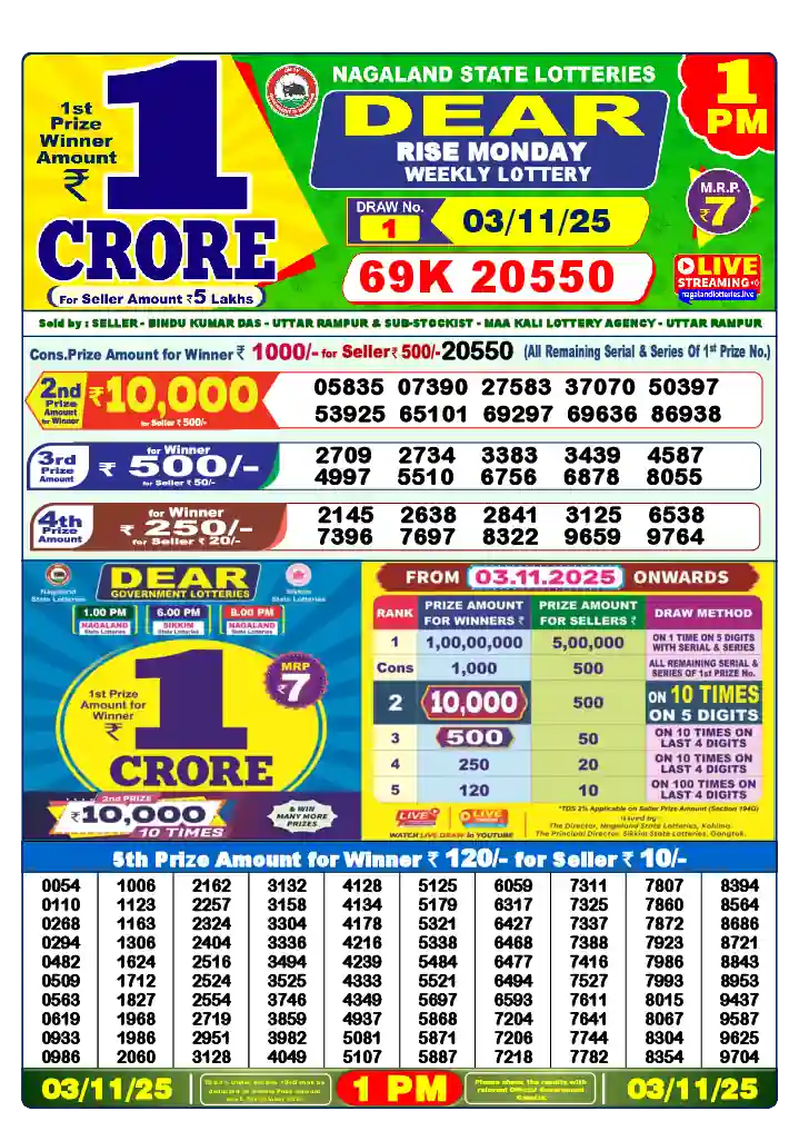 Nagaland Lottery Draw Live 03.11.25 1PM