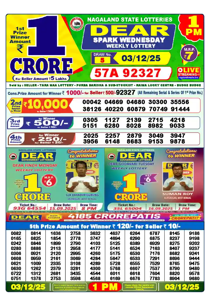 Nagaland Lottery Draw Live 03.12.25 1PM