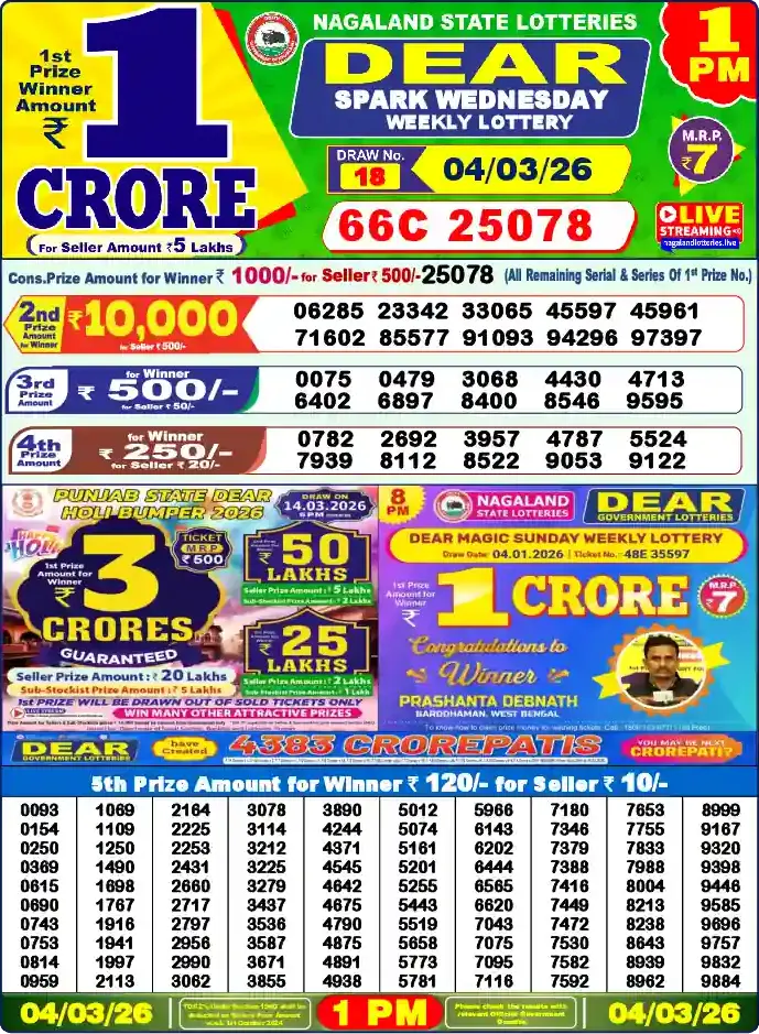 Nagaland Lottery Draw Live 04.03.26 1PM