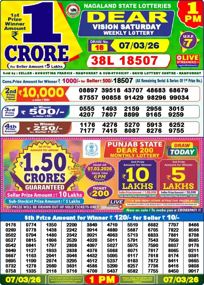 Nagaland Lottery Draw Live 07.03.26 1PM