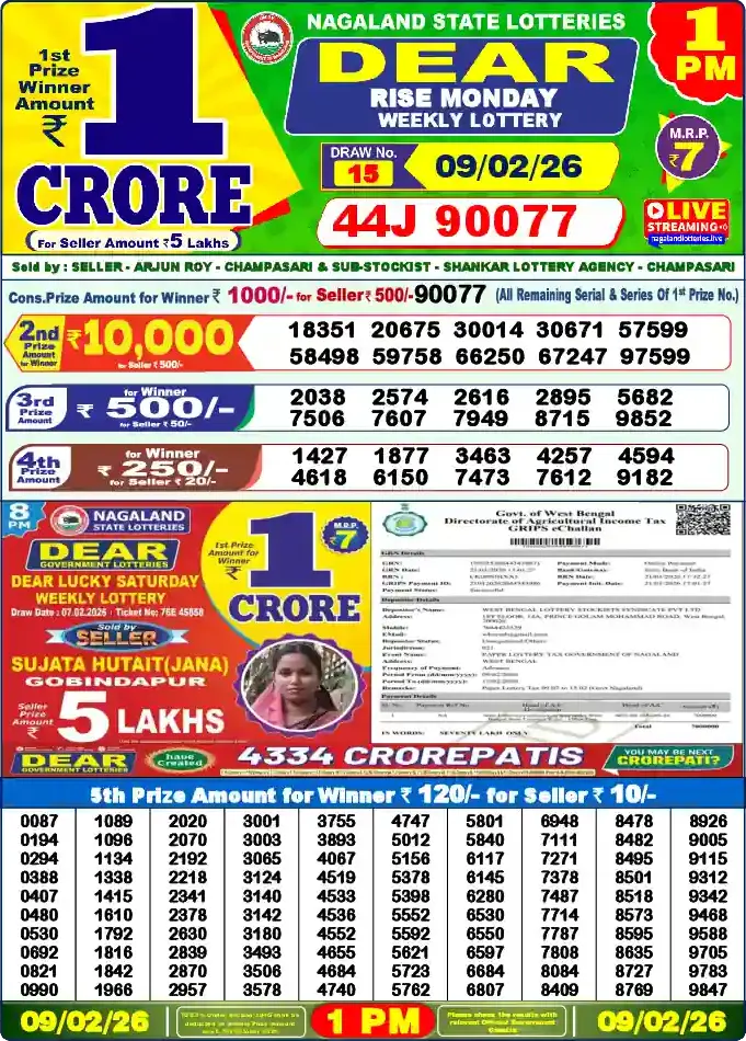 Nagaland Lottery Draw Live 09.02.26 1PM