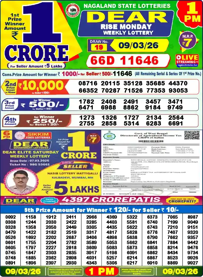 Nagaland Lottery Draw Live 09.03.26 1PM