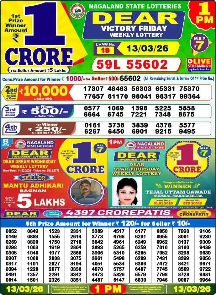 Nagaland Lottery Draw Live 13.03.26 1PM
