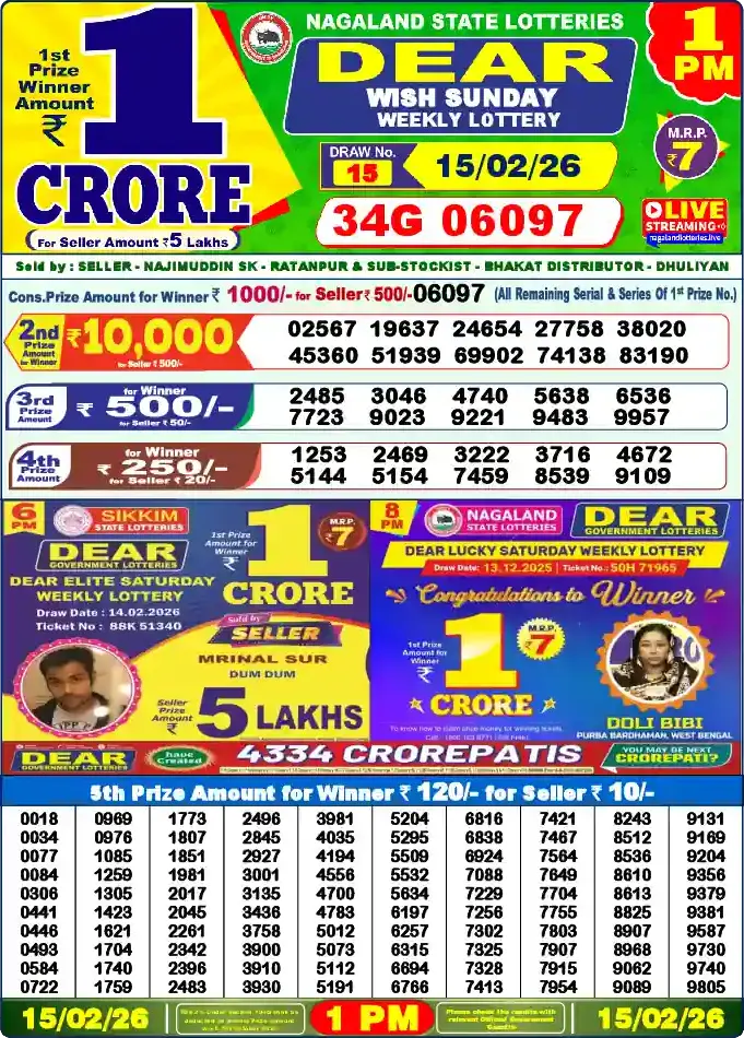 Nagaland Lottery Draw Live 15.02.26 1PM
