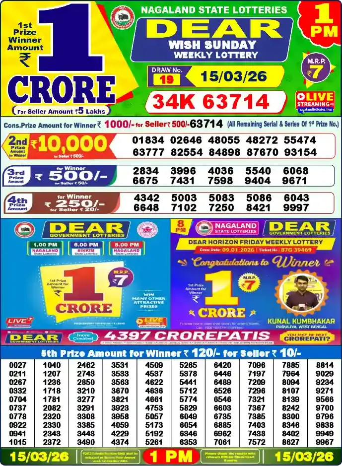Nagaland Lottery Draw Live 15.03.26 1PM