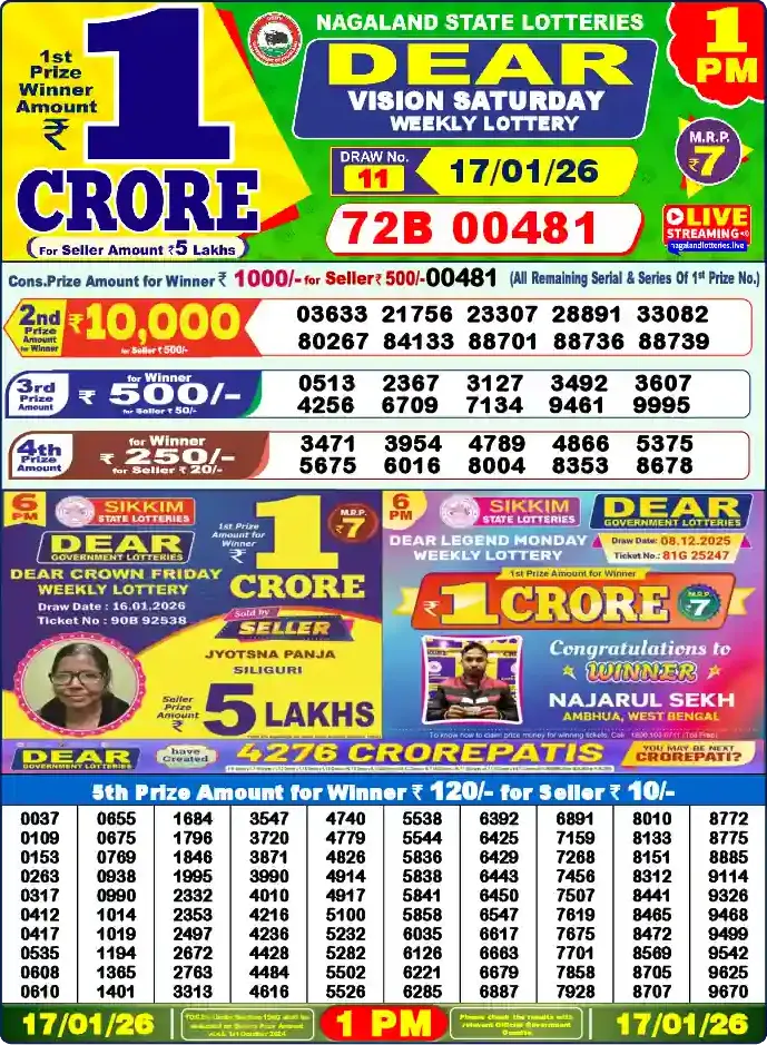 Nagaland Lottery Draw Live 17.01.26 1PM
