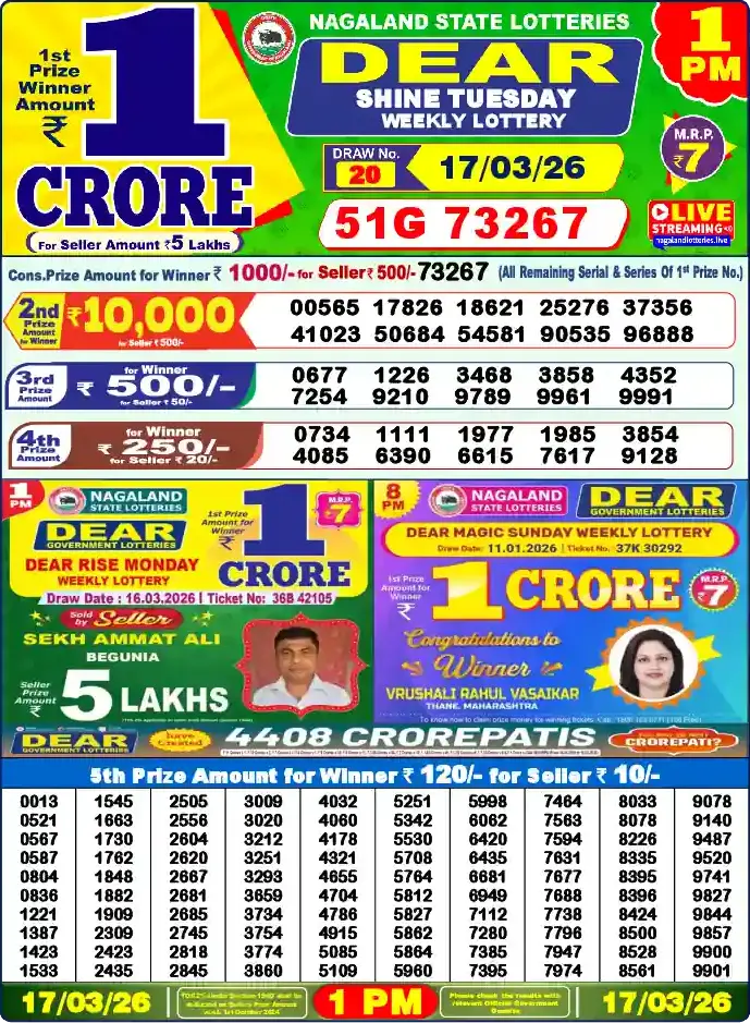 Nagaland Lottery Draw Live 17.03.26 1PM