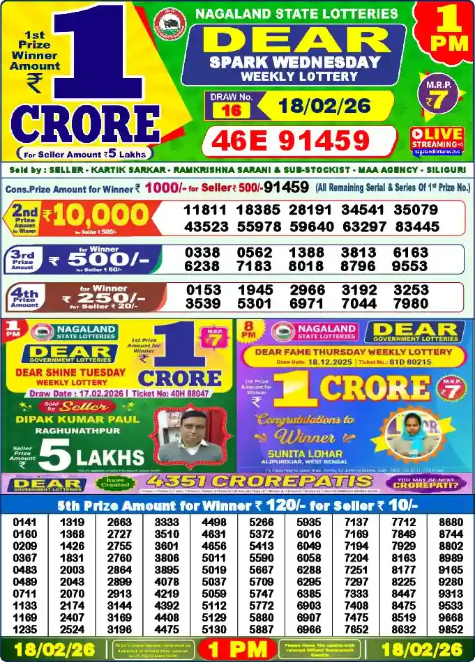 Nagaland Lottery Draw Live 18.02.26 1PM
