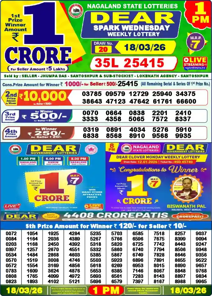 Nagaland Lottery Draw Live 18.03.26 1PM