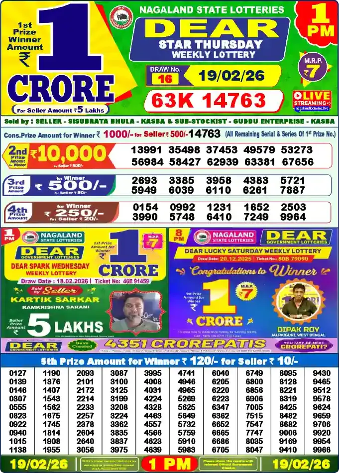 Nagaland Lottery Draw Live 19.02.26 1PM