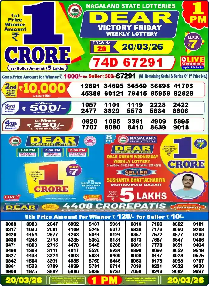 Nagaland Lottery Draw Live 20.03.26 1PM