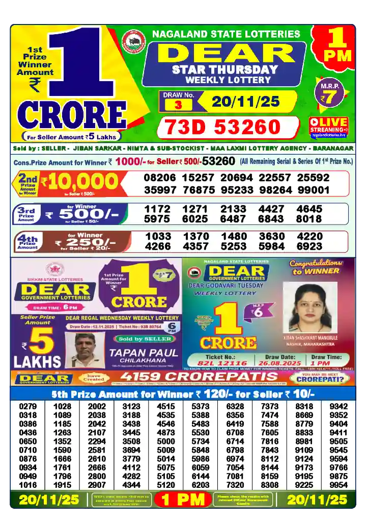 Nagaland Lottery Draw Live 20.11.25 1PM