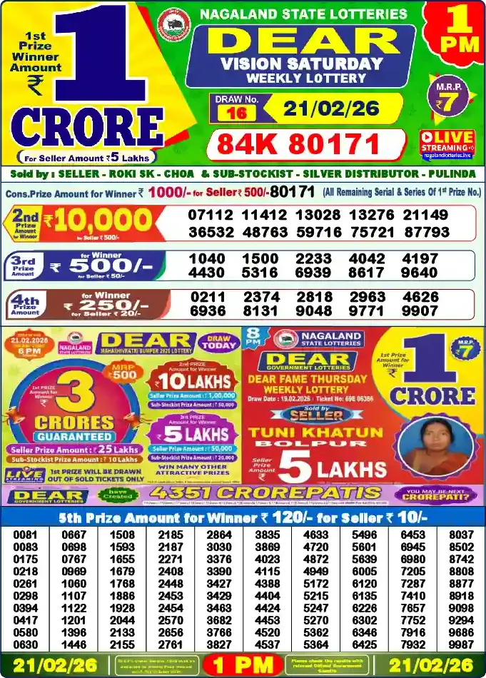 Nagaland Lottery Draw Live 21.02.26 1PM