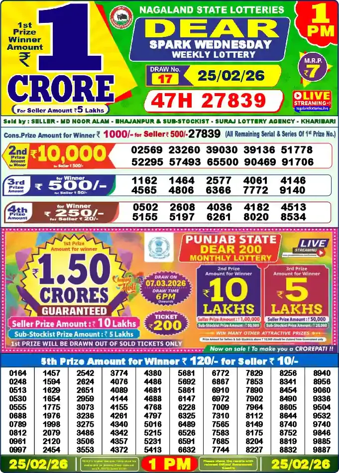 Nagaland Lottery Draw Live 25.02.26 1PM