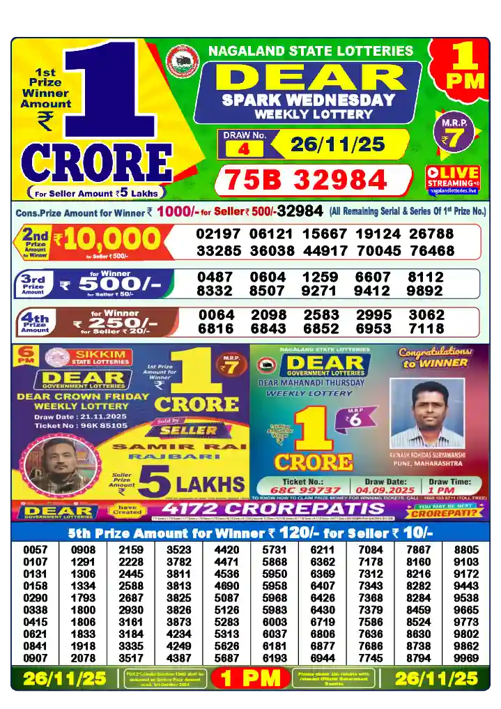 Nagaland Lottery Draw Live 26.11.25 1PM