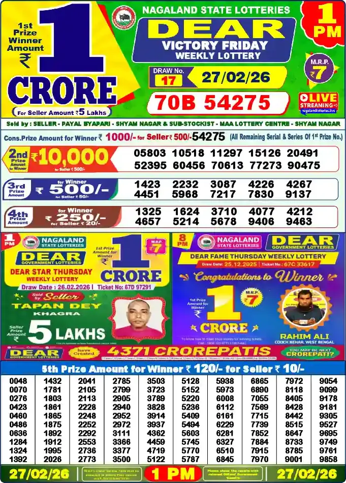 Nagaland Lottery Draw Live 27.02.26 1PM