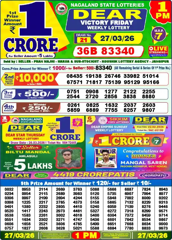 Nagaland Lottery Draw Live 27.03.26 1PM