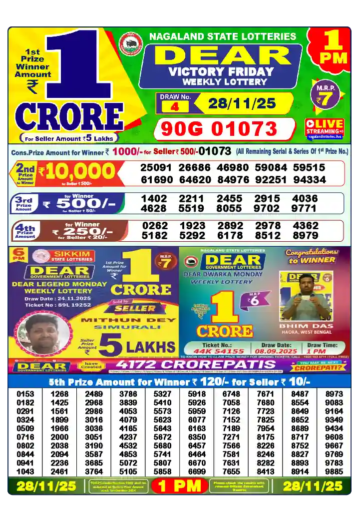Nagaland Lottery Draw Live 28.11.25 1PM