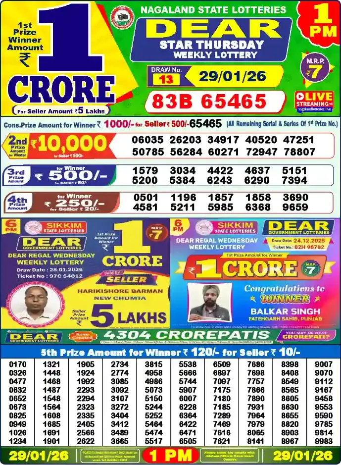 Nagaland Lottery Draw Live 29.01.26 1PM