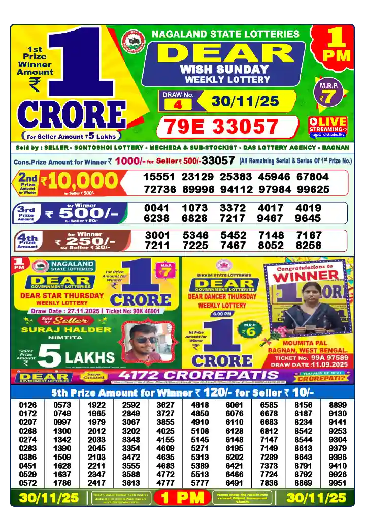 Nagaland Lottery Draw Live 30.11.25 1PM