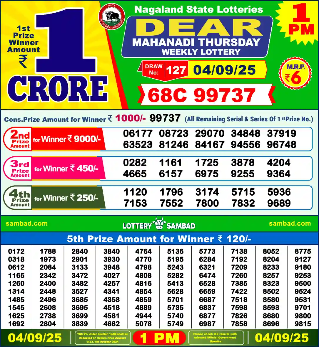 Check the Lottery Sambad Morning Result in PDF for September 04, 2025, at লটারি সংবাদ 1 PM draw, Nagaland.