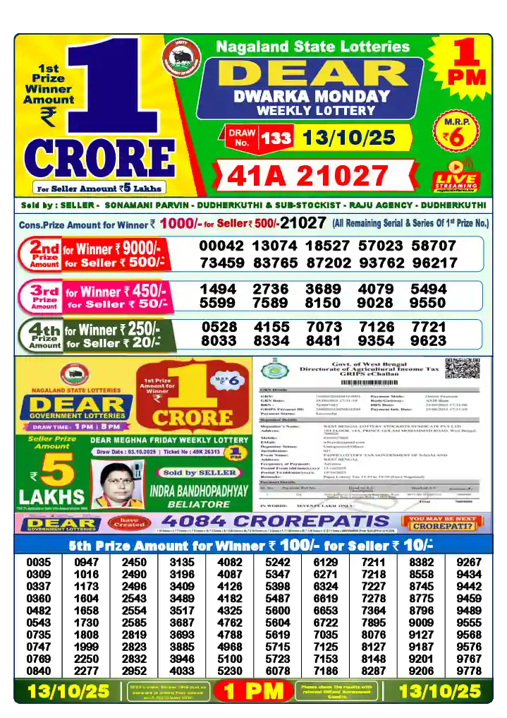 Nagaland Lottery Draw Live 13.10.25 1PM