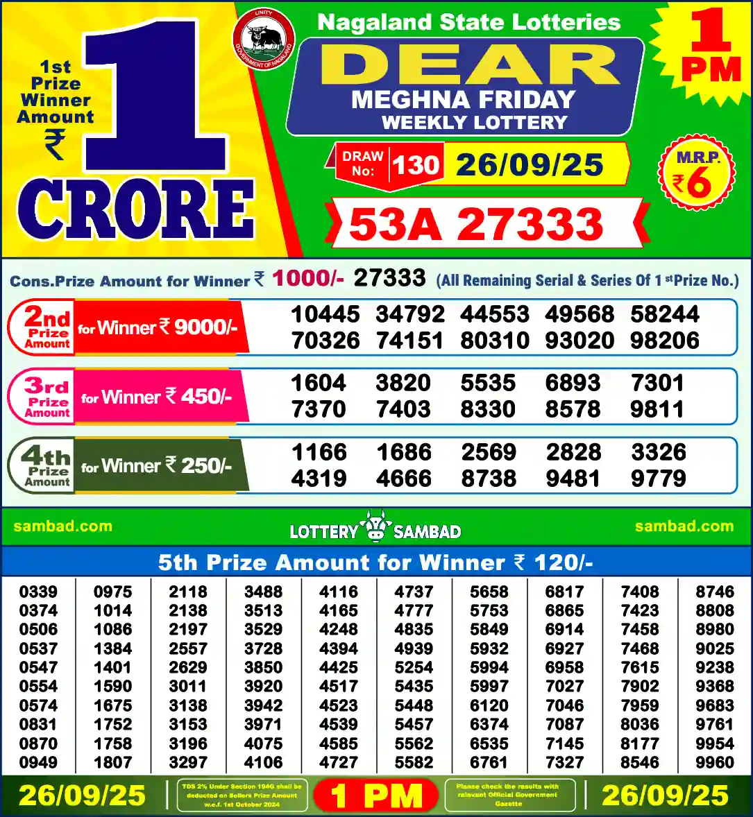 Check the Lottery Sambad Morning Result in PDF for September 26, 2025, at লটারি সংবাদ 1 PM draw, Nagaland.