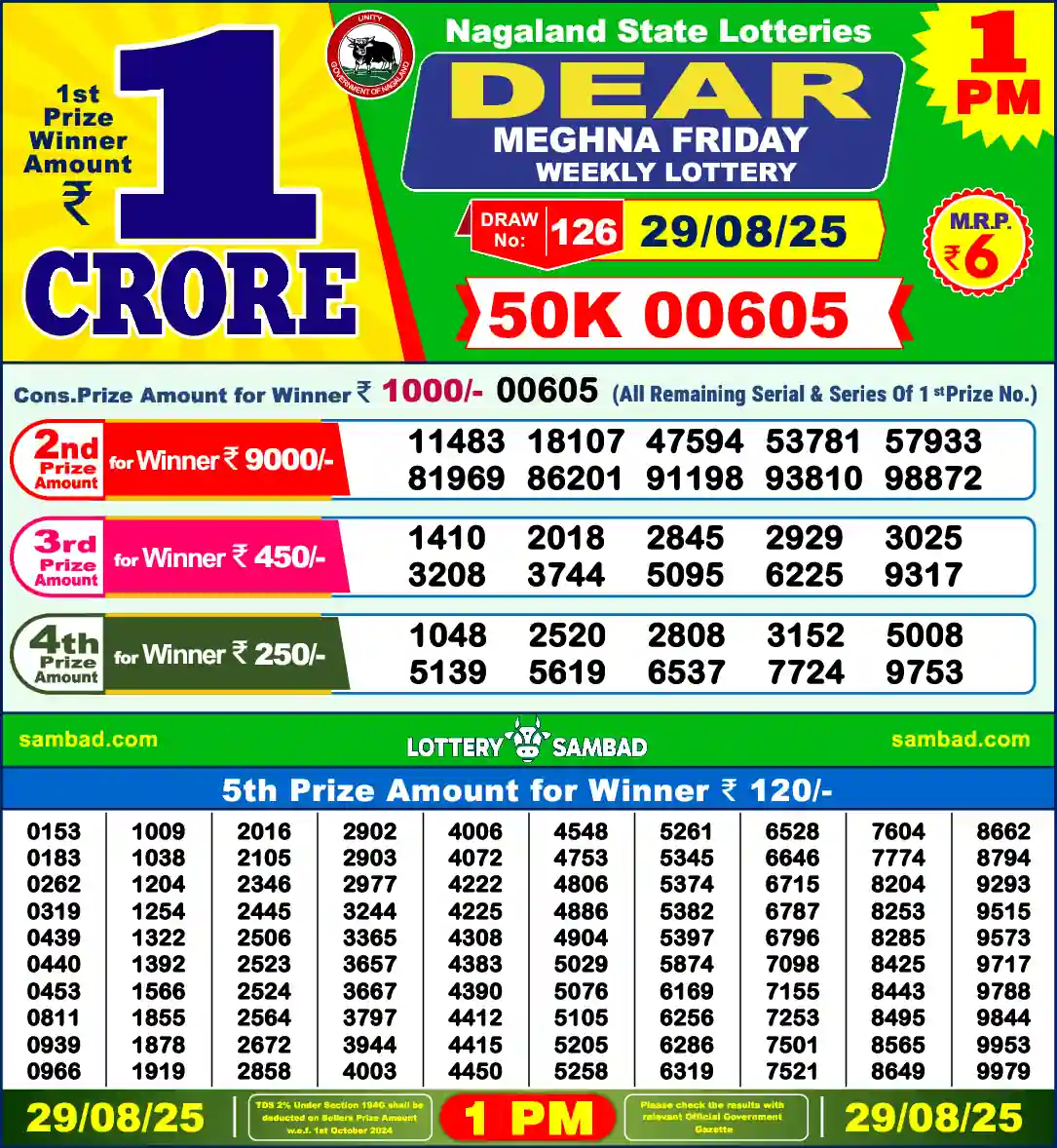 Lottery Sambad 29.08.25 - 6PM
