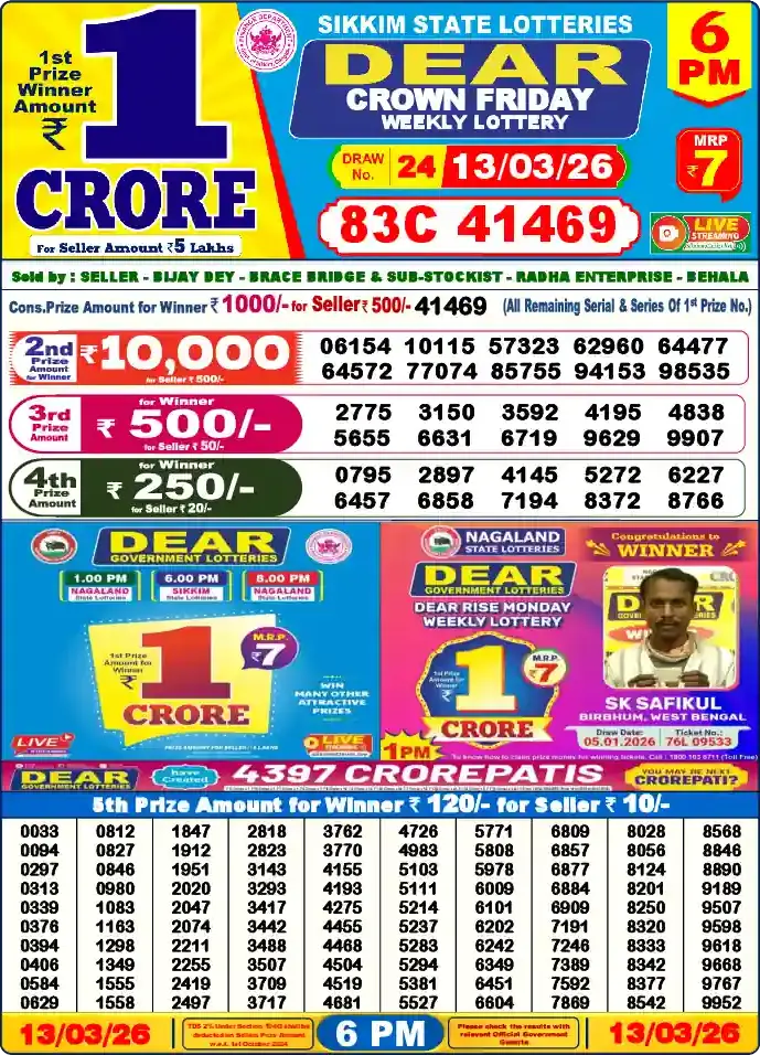 - Confirm the draw: 6PM (IST) and the correct date printed on your ticket.